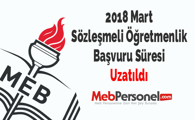 2018 Mart Sözleşmeli Öğretmenliğe Başvuru İşlemleri  09 Mart 2018 günü saat 17:00’a kadar uzatılmıştır.