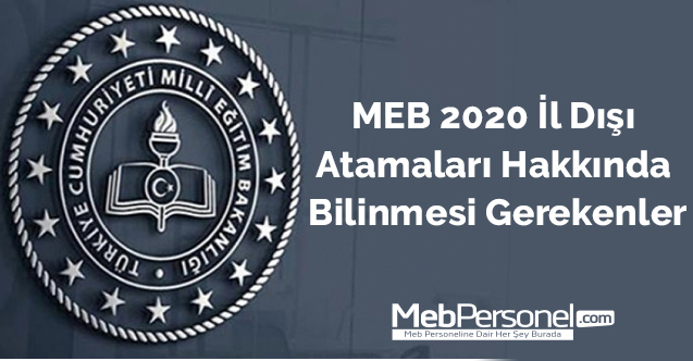 MEB 2020 il dışı atamaları için başvuru süreci bu hafta içi başlıyor. İl dışına bağlı yer değiştme atamaları için bu haberimizde tüm detayları mebpersonel.net olarak açıklıyoruz. Öğretmenlerin 2020 il dışı atamaları kapsamında tercih başvuruları bu hafta itibariyle alınmaya başlanacak. MEB 2020 il dışı atamaları için kontenjanları bu hafta yayınlayacak.