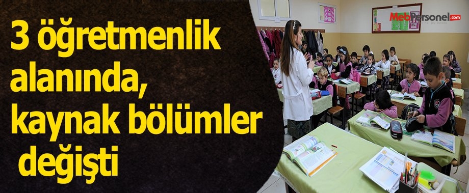 3 öğretmenlik alanında, kaynak bölümler değişti
