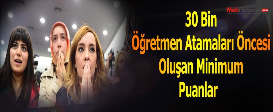 30 Bin Öğretmen Atamaları Öncesi Oluşan Minimum Puanlar. 30 Bin Öğretmen Ataması Öncesi Oluşan Minimum Puanlar MEB, Şubat Ayında 30 Bin Öğretmen Alımını Gerçekleştirecek. Devlet Personel Başkanlığı’nda Yayınlanmasının Ardından Son Atamada Hangi Bölüm Kaç Puanda Kaldı?