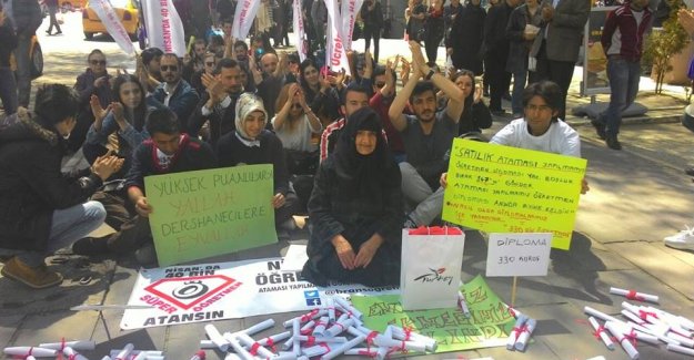 Atama Bekleyen Öğretmenlerden bir grup oturma eylemi yaparak Nisan’da 40 Bin Öğretmen Ataması talebinde bulundular. Eylemde diplomaları ile “Nisan’da 40 bin Atama” yazan öğretmenler talepleri karşılanıncaya kadar eylemi sürdüreceklerini söylediler..