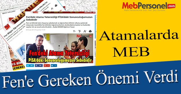 3) “Fen’deki Atama Yetersizliği PİSA’daki Sonunculuğumuzun Sebebidir “ başlığı ile verdiğimiz haberimizde Eylül ayında yapılan 40 Bin öğretmen atamalarında fen ve teknoloji öğretmenliğine 1375 kişilik kontenjan verilmesinin çok az olduğunu ve PİSA’daki fen bilimleri alanındaki başarısızlığımızı verileri ile değerlendirmiştik .Başarısızlığımızın ana sebebinin Fen ve Teknoloji öğretmenliğine atama yetersizliği olduğunu vurgulamıştık