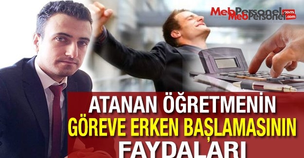 Öğretmenler özellikle ilk atandıklarında gerek özlük haklarını ve gerek mali haklarını bilmedikleri için bazen göreve başlarken yavaştan alabiliyorlar. Fakat ilk atama yolu ile atanan öğretmenlerin görevlerine erken başlanmasının bazı faydaları vardır.Bu yüzden atanan öğretmenlerin göreve erken başlamasının nasıl kazanımlar sağlayacağını eğitimci arkadaşlarımızın önüne sunmak istiyorum.Özellikle atanan öğretmenlerimizin göreve başlar başlamaz paraya ihtiyaçları olduğunu düşünürsek erken başlayanın daha fazla ilk maaşını alacağının altını çizmek istiyorum.Fakat ilerleyen zamanları düşündüğümüzde ise göreve erken başlamanın paradan daha önemli olan hususları da var.O da yer değiştirirken kullanacağı hizmet puanıdır.
