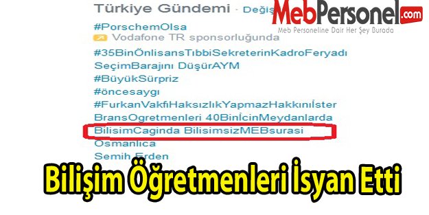 1 saat Twitter TR gündeminde “BilisimCaginda BilisimsizMEBSurasi” tag ı ile tweetler atan Bilişim Öğretmenleri her kademede bilişim dersi istediklerini belirttiler.