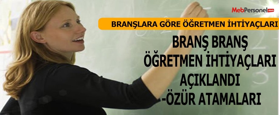 BRANŞ BRANŞ ÖĞRETMEN İHTİYAÇLARI AÇIKLANDI -ÖZÜR ATAMALARI. Milli Eğitim Bakanlığı branş branş öğretmen ihityaçlarını açıkladı. Özür grubu atamaları için bakanlık tüm branşlarda bulunan öğretmen ihtiyaç sayılarını ilan etti.