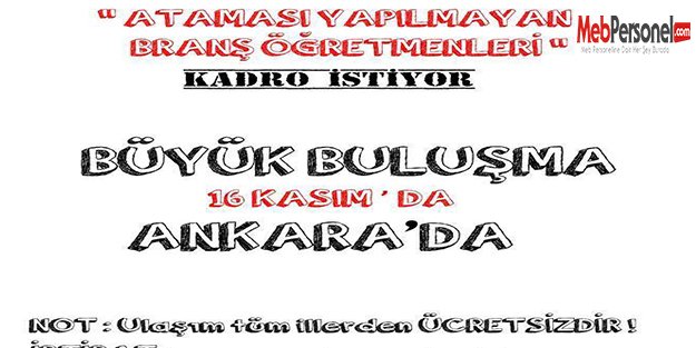 16 Kasımda Ankara‘da bir araya gelerek seslerini duyurmaya çalışan branş öğretmenleri aylar öncesinden yaptıkları planları şu anlarda gerçekleştiriyorlar. Türkiye’nin hemen hemen her yerinden binlerce öğretmen adayı eyleme destek vermek amacıyla Ankara’ya akın etti.
