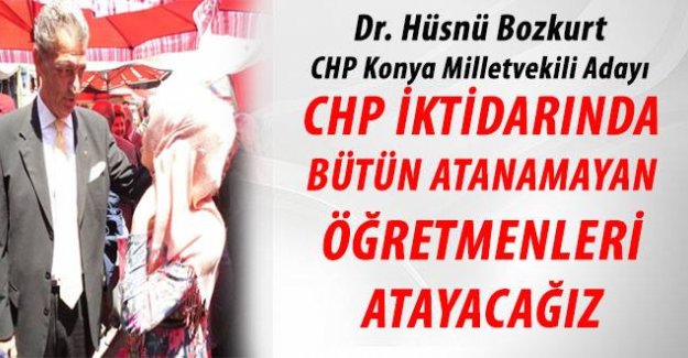 CHP Konya Milletvekili 1. Sıra adayı Dr.Hüsnü Bozkurt ve beraberindeki partililer,  Akşehir ilçesinde çalışmalarına devam etti.Akşehir’de kurulan pazarda pazar esnafının ve halkımızın sorunlarını dinleyen Hüsnü Bozkurt çözüm önerilerini de anlattı.Ataması yapılmayan öğretmenimize CHP iktidarında atanamayan öğretmen sorununun kalmayacağını belirten Hüsnü Bozkurt köylerde kapatılan okulların tekrar açılarak köylü ile öğretmeni buluşturacaklarını,bir yıl içinde Toki aracılığı ile derslik sorunun çözerek ataması yapılmayan öğretmenlerimizin atanacaklarını belirtti.