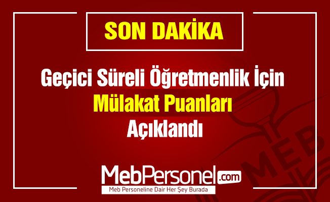 Geçici Süreli Öğretmenlik İçin Mülakat Puanları MEB Tarafından Açıklandı. Geçici Süreli Öğretmenlik İçin Mülakat Puanları İçin Tıklayınız