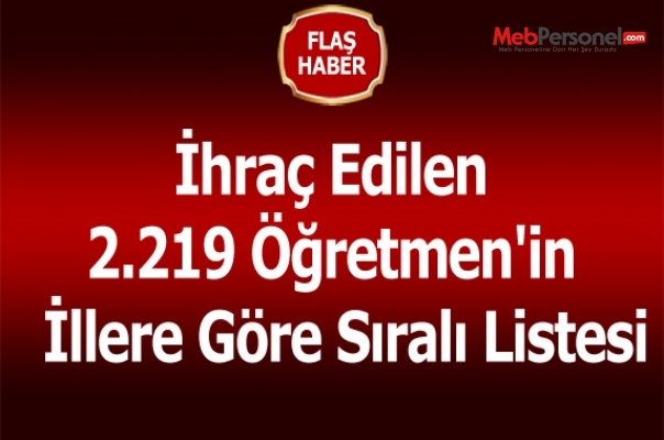 İhraç Edilen 2.219 Öğretmen’in (MEB Personel) İllere Göre Sıralı Listesi
