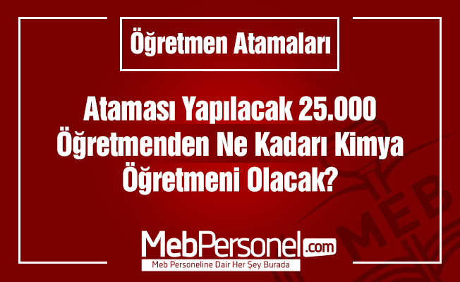 2015 yılı Şubat döneminde toplam 15 bin atama yapılmış ve 290 Kimya öğretmeni atanmıştır. Bu atamada Kimya öğretmenliği toplam kontenjanın %1.93’ünü alabilmiştir. Bu atamayı takip eden diğer 5 atamada sırasıyla Kimya öğretmenleri yüzde olarak şu payları almıştır: %1.58 — %1.44 — %0.95 — %0.95 — %1.12.