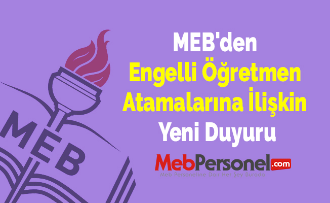 Milli Eğitim Bakanlığından engelli öğretmen atamalarına ilişkin duyuru yapıldı. MEB’den yapılan o duyuru Mebpersonel.com’da:
