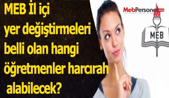 MEB İl içi yer değiştirmeleri belli olan hangi öğretmenler harcırah alabilecek? MEB İl içi nakli çıkan hangi öğretmenler harcırah alabilecek? İl içi nakil sonuçları, 6 Haziran itibariyle illerin neredeyse büyük kısmında açıklandı. MEB’in daha önce açıkladığı takvime göre, ilişik kesme işlemleri 17 Haziran’dan itibaren yapılabilecek.