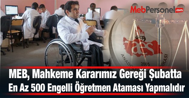 MEB, Mahkeme Kararımız Gereği Şubatta En Az 500 Engelli Öğretmen Ataması Yapmalıdır ;