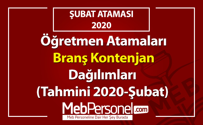 Öğretmen Atamaları Branş Kontenjan Dağılımları (Tahmini 2020-Şubat Ataması)