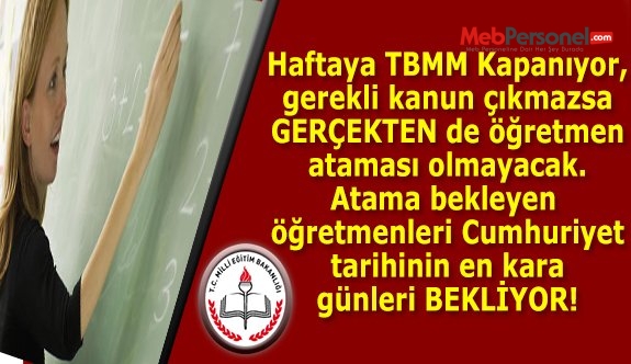 Milli Eğitim Bakanlığı da öğretmen istihdam etmesi gerekirken görevini yerine getirmiyor. Atama bekleyen öğretmenler yetkililerden bir an önce açıklama ve olumlu haber bekliyor. Eğer meclis kapanırsa olağanüstü oturum haricinde herhangi bir kanun geçirilemeyeceği için öğretmen atamaları da suya düşmüş oluyor.
