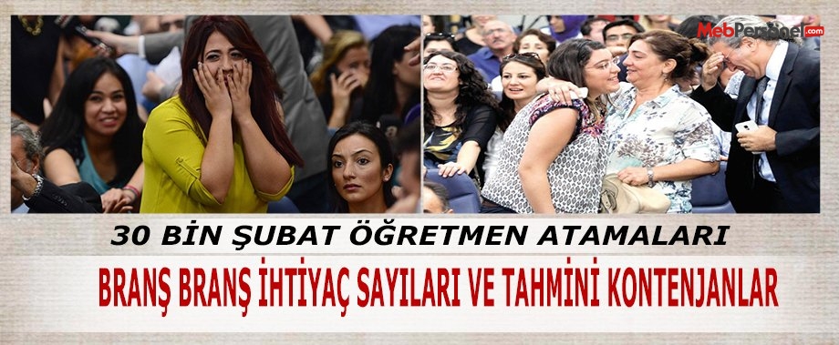 2016 ŞUBAT AYINDA YAPILACAK 30 BİN ÖĞRETMEN ATAMALARI İÇİN BRANŞ BRANŞ KONTENJAN TAHMİNİ TABLOSU..