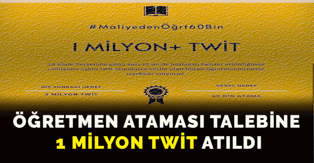 İlk defa öğretmen atamasıyla ilgili bir etkinlikte 1 milyondan fazla tweet atıldığını gördüm. Gerçekten inanmak başarmanın yarısıdır. Milyonların sesini duyun derim sayın büyüklerim.