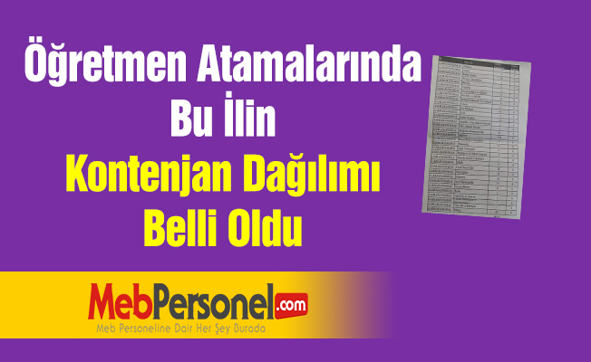 Mebpersonel.com olarak yakından takip ettiğimz bu süreçte bir ilin kontenjan dağılımını sizlerle paylaşıyoruz.
