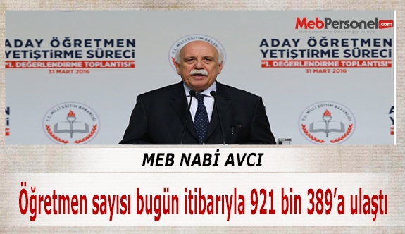 Son dönemde, eğitimin bütün alanlarında olduğu gibi, maarifin can damarı öğretmenlik mesleğine özel bir önem verdiklerini belirten Avcı, toplam öğretmen sayısının bugün itibarıyla 921 bin 389’a ulaştığını bildirdi.