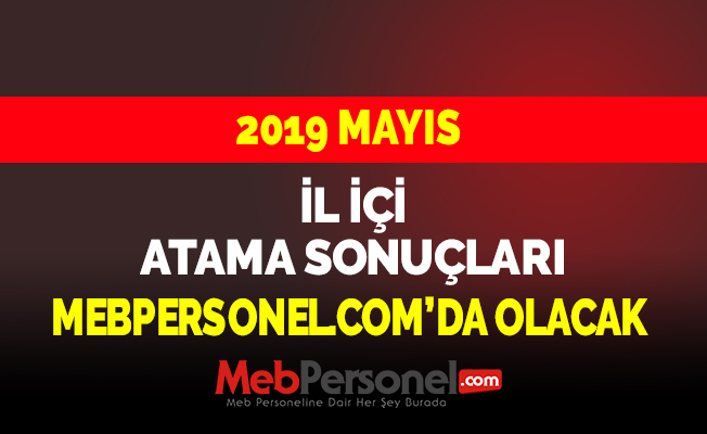 Öğretmenlerin il içi atama sonuçları Mebpersonel.com’da olacak… 2019 Mayıs il içi yer değiştirmelerde başvuru süreci sona erdi. Sırada atama sonuçları var. Öğretmenler heyecanla atama sonuçlarını bekliyorlar.