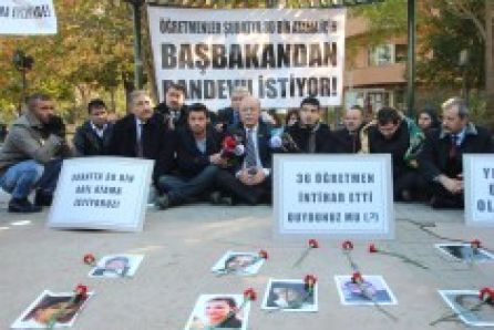 Ataması yapılmayan öğretmenler, ‘Şubatta 30 bin adil atama bekliyoruz’, ‘36 öğretmen intihar etti’, ‘Öğretmenler Günü’müz yine kutlu değil’ pankartları açtı, intihar eden 36 öğretmenin fotoğraflarını yere serdi, fotoğrafların üzerlerine karanfil koydu. Genel Başkan Koncuk da ataması yapılmayan öğretmenlerin üşümemesi için onlara battaniye verdi.