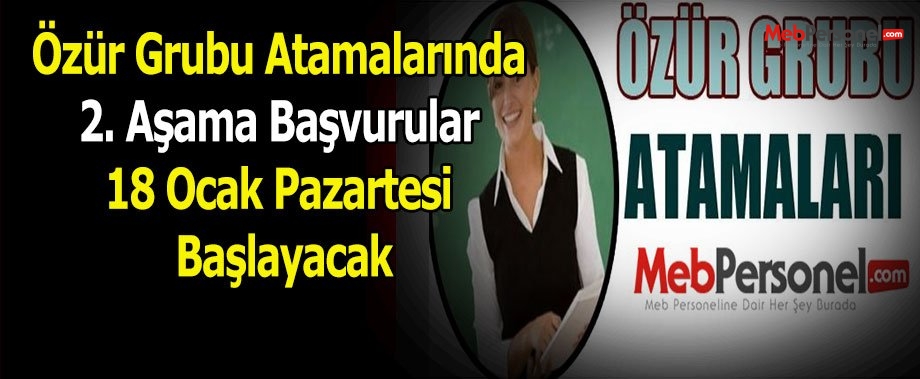 Özür Grubu Atamalarında 2. Aşama Başvurular 18 Ocak Pazartesi Başlayacak