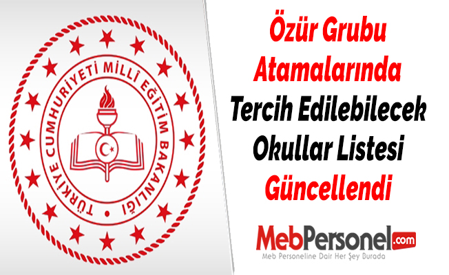 Bugün itibariyle özür grubu atamaları kapsamında tercih edilebilecek okullar listesi güncellendi.
