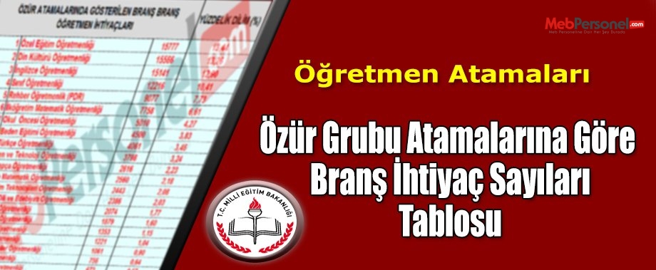 Öğretmen Atamaları -Özür Grubu Atamalarına Göre Branş İhtiyaç Sayıları. 2016 Şubat Öğretmen atamaları için sadece 20 gün kaldı. Aylardır atama bekleyen öğretmen adaylarının büyük bir merakla beklediği branş branş kontenjan dağılımlarında sona gelindi. Öğretmen adayları 30 Bin Şubat Öğretmen atamaları için kendi branşlarına verilecek olan kadroları merak ediyorlar. Branş bazında en çok kadro alacak branşların hangi branşlar olacağı da yine eğitim uzmanları tarafından merak ediliyor.