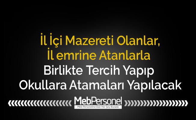 İl İçi Mazereti Olanlar, İl emrine Atanlarla Birlikte Tercih Yapıp Okullara Atamaları Yapılacak