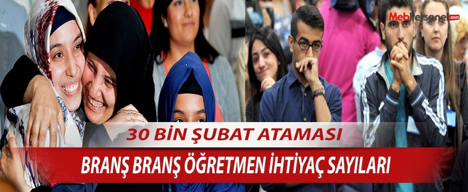 30 Bin Şubat Öğretmen atamaları için, Branş Branş Öğretmen İhtiyaçları Tablosu. Bu haberimizde öğretmen atamaları için öğretmen ihtiyaç sayılarının bulabileceksiniz…