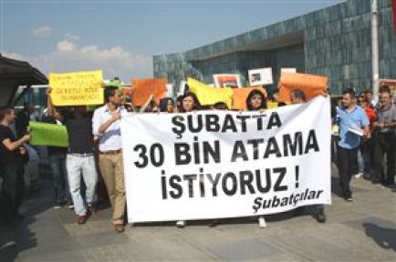 Kent Meydanı’nda toplanan yaklaşık 300 kişilik grup, açtıkları pankartlarla yaşadıkları mağduriyete dikkat çekti. Sloganlar eşliğinde yürüyüşe geçen grup, Şehreküstü Meydanı’nda basın açıklaması yaptı. Ömer Karadeniz ve Lütfiye Çakmak, Milli Eğitim Bakanı Ömer Dinçer’in 120 bin öğretmen açığı olduğu yönündeki açıklamasını hatırlattı, atamanın bir an önce yapılmasını istedi. Öğretmen olabilmek için bu yola çıktıklarını belirten Karadeniz ve Çakmak, “Hayallerinde tebeşir tutmak olan öğretmenlerin hayalerine engel olunmasın.” ifadelerini kullandı. Öğretmenler ayrıca tepkilerini dile getirmek için temsili olarak diplomalarını çöpe attı.