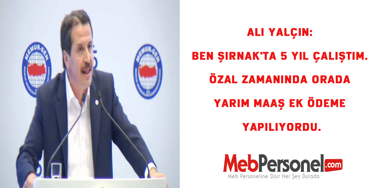 Memur-Sen Genel Başkanı Ali Yalçın, Ben Şırnak'ta 5 yıl çalıştım. Önceden Özal zamanında orada yarım maaş ek ödeme yapılıyordu.