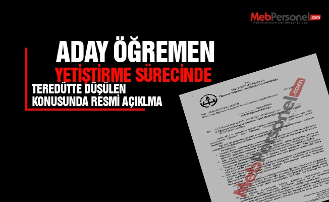 MEB Öğretmen Yetiştirme Ve Geliştirme Genel Müdürlüğü tarafından Aday Öğretmen yetiştirme süreci tereddüte düşülen hususlar konulu yazı ile Şubat 2016 ve sonrasında ataması yapılıp yetiştirme sürecini bitirmemiş olan kadrolu ve sözleşmeli öğretmenler ayrıca özel öğretim kurumlarından adaylığı kaldılırmış olan dershane öğretmenler konusunda teredütte düşülen konularda gerekli açıklamalar yapıldı.