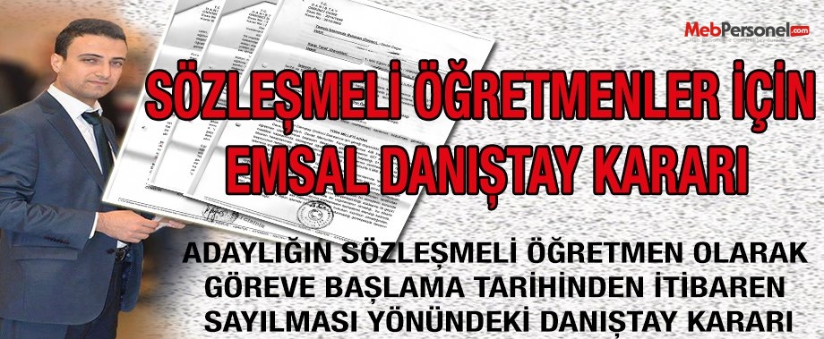 Böylece Danıştay’da kazanılan bu dava ile  adaylık işlemlerinin sözleşmeli statüde geçen hizmetleri dikkate alınmak suretiyle  sözleşmeli öğretmen olarak  göreve başladığı tarihten itibaren kadrolu öğretmenlerde olduğu gibi başlanması ve özlük haklarının da aynı yönde değerlendirme yapılarak verilmesine Danıştay nezdinde emsal niteliğinde ilk kez bir karar çıkmış oldu.