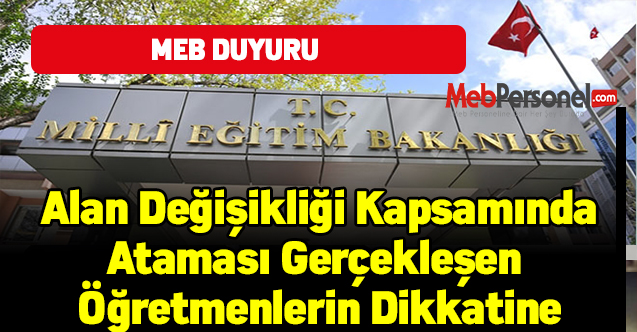 Bilindiği üzere 2020 Yılı Alan Değişikliği atama işlemi 29 Aralık 2020 tarihinde sonuçlandırılmış olup görevden ayrılama ve başlama işlemlerinin 22 Ocak 2021-05 Şubat 2021 tarihleri arasında yapılacağı belirtilmişti.