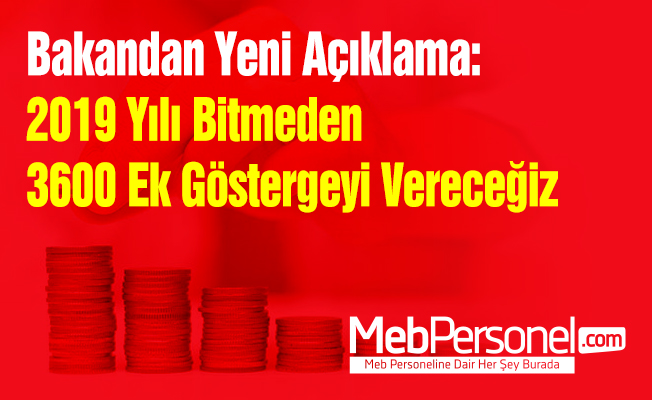 İçişleri Bakanı Süleyman Soylu Cumhurbaşkanı Recep Tayyip Erdoğan’ın bu konuda söz verdiğini hatırlatarak “Biz bu sözümüzün arkasındayız. Polislerimize, hemşirelerimize, öğretmenlerimize ve imamlarımıza 2019 yılı bitmeden 3600 ek göstergeyi vereceğiz.” Bununla ilgili çalışmaların devam ettiğini, çalışmaların tamamlanması gerektiğini daha sonra da verdikleri sözü gerçekleştiriceklerini aktaran Bakan Soylu; ” Benim kişisel kanaatim 2019 yılı bitmeden bu iş çözülür” ifadelerini kullandı.