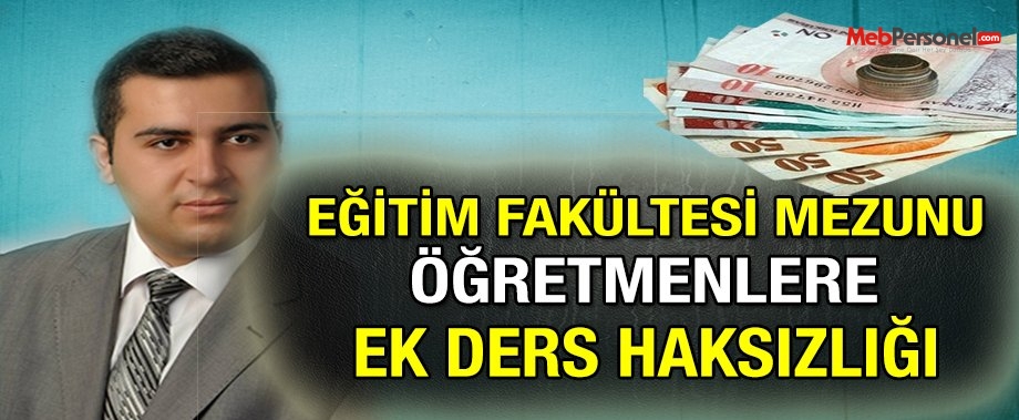 Ek Ders Yönetmeliği’nin ve 657’nin 176. Maddesinde belirtilen bir ifade EĞİTİM FAKÜLTESİ Mezunlarına yapılan bir haksızlığın da önünü açıyor. Tezsiz Yüksek Lisans adı ile başlayan daha sonra Pedagojik Formasyon ismini alan ve en sonunda da Öğretmenlik Sertifikası adı ile devam eden Fen-Edebiyat Fakültesi mezunlarına öğretmen olma imkanı tanıyan ve atanabilmeleri için mecburen almaları gereken Eğitim Bilimleri Derslerini eskiden bir buçuk yıl, son 4 yıldır da bir yıla indiren bu süreçte bu yolla öğretmen olanları “Yüksek Lisans Mezunu” sayıp ek derslerini % 5 fazla ödeyen M.E.B. biran evvel bu haksızlığı gidermelidir. Öğretmen olmak için Eğitim Bilimleri Derslerini görmek mecburidir. Ayrıca formasyon ya da sertifika alanlara bu ödeme yapılmazken sadece “Tezsiz Yüksek Lisans” belgesi olanlara bu hakkın tanınması da ayrı bir çelişkidir. MEB’den bu haksızlığın giderilmesini bekliyoruz.