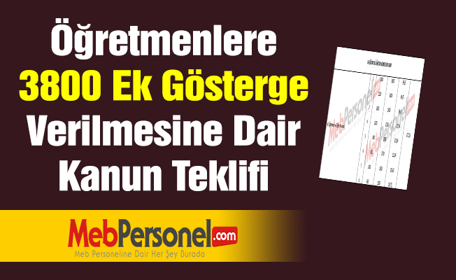 3600 ek gösterge vaadi ise uzun zamandır konuşulmaktadır. Öğretmenler 3600 ek gösterge beklerken 3800 ek gösterge verilmesine yönelik kanun teklifine Mebpersonel.com olarak ulaştık.