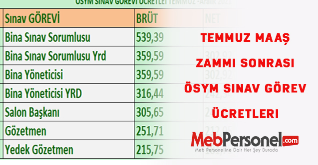 2021 Temmuz ayı zammı sonrası vergi dilimlerine göre ÖSYM tarafından yapılan Merkezi Sınavlarda vergi dilimlerine göre alınacak güncel ücret tablosu.