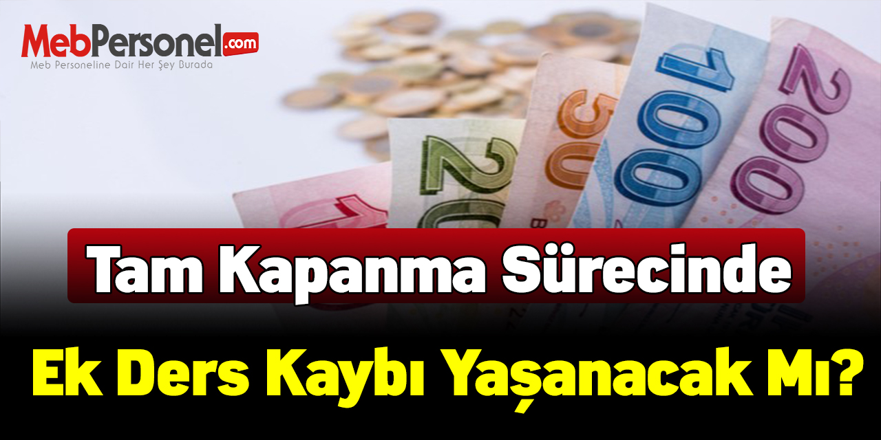 Öğretmenlerin tam kapanma sürecinde ek ders kaybı yaşanıp yaşanmayacağı bakanlık tarafından gönderilecek resmi yazı ile netleşecek. Eğer Bakanlık geçtiğimiz sene Mart – Haziran ayları arasında olduğu gibi öğretmenleri idari izinli saymaz ise bazı öğretmenlerin ek dersi kaybı yaşaması kaçınılmaz gibi görünüyor. Özellikle meslek liselerinde görev yapan meslek öğretmenlerinin koordinatörlük, şeflik gibi ders ücretlerinin tam olarak ödenmesi için bakanlığın meslek öğretmenlerini bu ders saatleri içinde idari izinli sayması gerekmektedir. Sonuçta bu ek ders yerine geçen bu görevler normal ders saatleri dışında icra edilmektedir.
