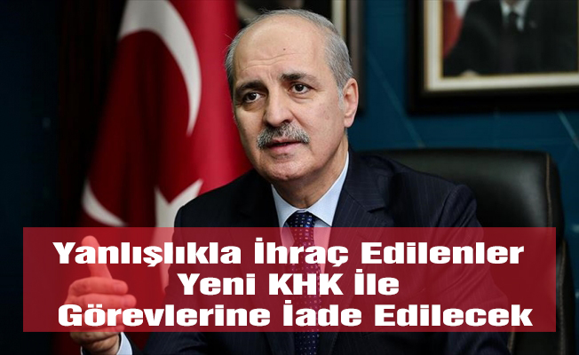 Başbakan Yardımcısı Numan Kurtulmuş, Fetullahçı Terör Örgütü (FETÖ) ile mücadelede varsa yanlışlıkların düzeltileceğini ifade ederek, “Önceki gece bir Kanun Hükmünde Kararname (KHK) için sabaha kadar çalışıldı. Bu KHK içerisinde yanlışlıkla görevden alınanlar veya haklarında işlem yapılanlar varsa düzeltildi. Önümüzdeki günlerde de düzeltilecek.” dedi.