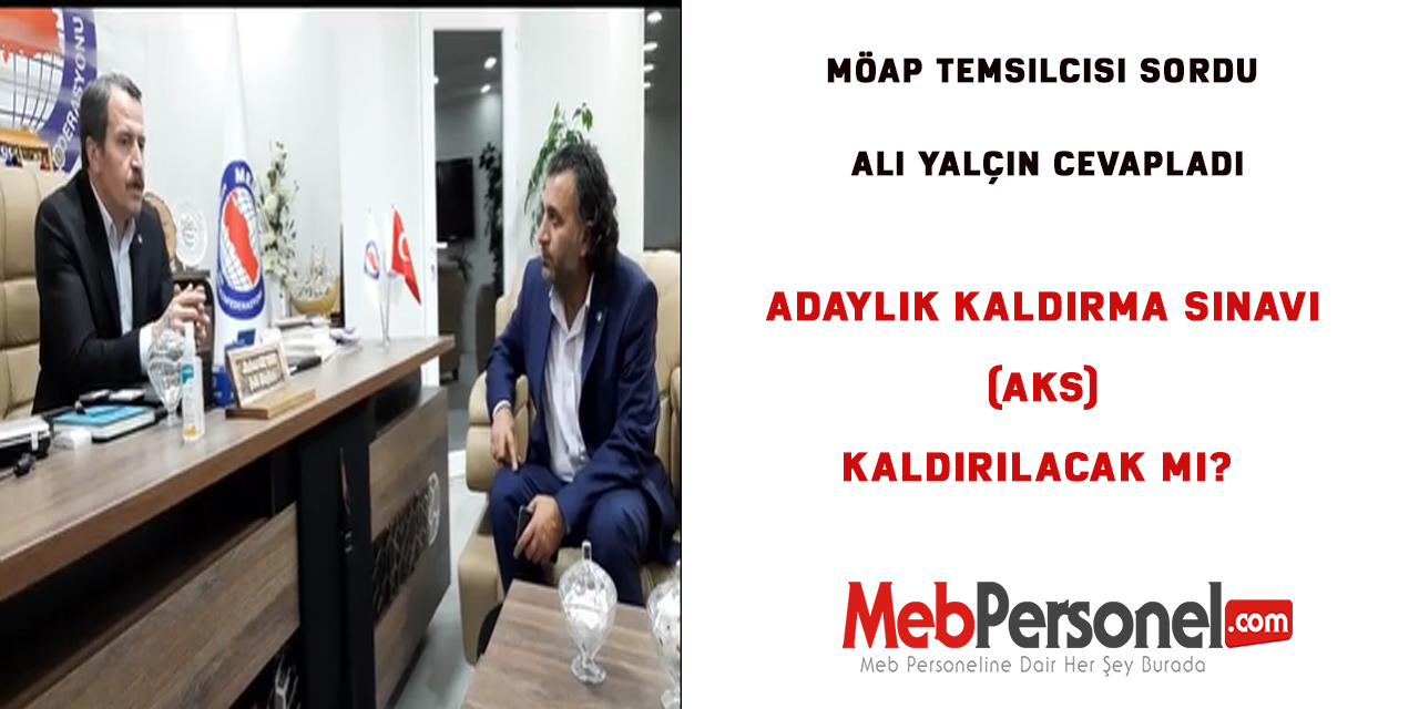 MEB Öğretmenler Atama Platformu(MÖAP) Temsilcisinin Memur-Sen ve Eğitin Bir Sen Genel Başkanı Ali Yalçın’a yaptığı ziyarette Adaylık sınavı kaldırılacak mı? konusunda Genel Başkan Ali Yalçın ; Bunun kaldırılması konusunda kararlıyız, elimizden gelen gayreti ortaya koyacağız ve bu eninde sonunda kaldırılacak. açıklamasında bulundu.