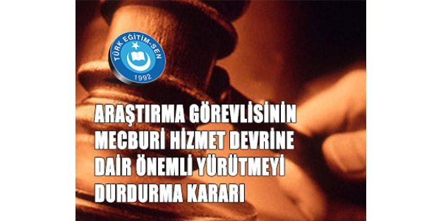 Türk Eğitim Sen Üyesi Araştırma Görevlisinin , mecburi hizmet devrine dair Balıkesir İdare Mahkemesine açtığı  Yürütmeyi Durdurma davası karara bağlandı.