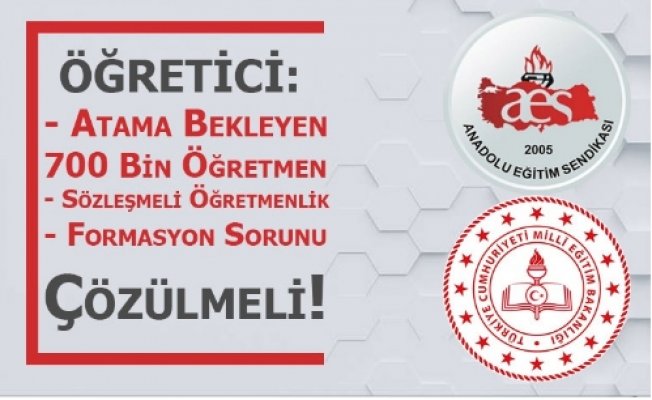 Milli Eğitim Bakanlığında atama bekleyen 700 bin öğretmen var ve Bakanlığında acilen 100 bin öğretmene ihtiyacı! Hal böyle iken MEB atamalar konusunda ciddi bir atak yapmalıdır. MEB bu sene 100 bin öğretmen açığı ve bir o kadar ücretli öğretmen ile eğitim-öğretime başlandığını unutmamalı, atama bekleyen öğretmenler ile öğretmenlerini bekleyen öğrencileri buluşturmalıdır.
