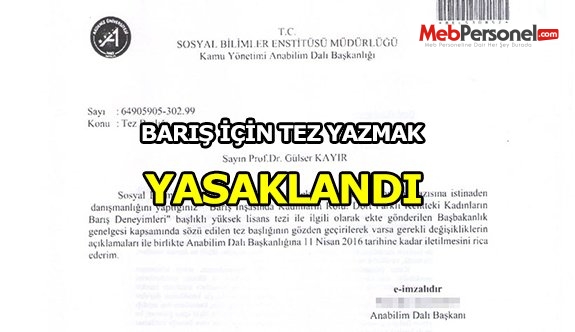 Yazıda şunlar ifade edildi: “Örneğin ‘barış kelimesi bunlardan biridir. Barış kelimesi ‘savaşın bittiğinin bir antlaşmayla belirtilmesinden sonraki durum’ olarak tarif edilirken tez planında resmi ve bilimsel terminolojiden uzak, eğer farklı bir niyet ifade etmiyorsa, sokak ağzı ve rasgele kullanılan bir terim görünümündedir. Ayrıca kamuoyunda Barış İçin Kadınlar, Barış Anneleri İnisiyatifi, Barış İçin Kadınlar Girişimi gibi legal görünüm altında illegal faaliyet yürüttüğü algısı oluşan bir takım yapıların tezin paydaşı olması ilgi (a) sayılı yazımız ekinde gönderilen 2016/4 sayılı Başbakanlık genelgesi ile tezat oluşturmaktadır.”