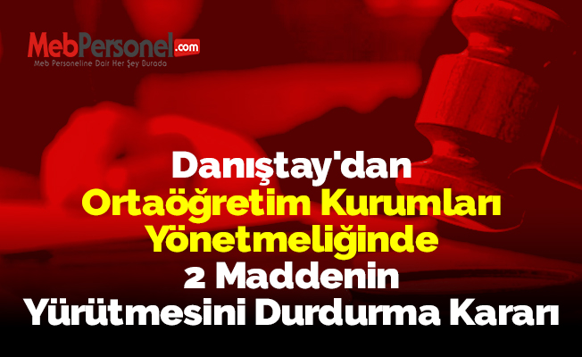 28/10/2016 tarih ve 29871 sayılı Resmi Gazete’de yayımlanan Milli Eğitim Bakanlığı Ortaöğretim Kurumları Yönetmeliğinde Değişiklik Yapılmasına Dair Yönetmeliğin, ana yönetmelikte birtakım değişiklikler ve eklemeler öngören bazı maddelerinin düzenlemesinin öncelikle yürütmesinin durdurulması ve sonrasında iptali amacıyla Türk Eğitim-Sen olarak açtığımız davada Danıştay İdari Dava Daireleri Kurulu’nca 2017/710 YD İtiraz No’lu kararla;