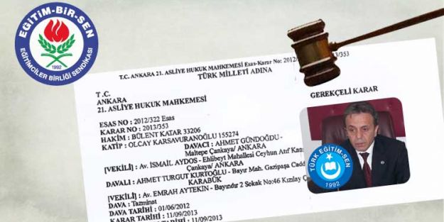 Toplu sözleşme görüşmeleri sonrası Karabük’te yaptığı sözde eylemde Genel Başkan Ahmet Gündoğdu için kullandığı küfür ve hakaret içerikli sözleri nedeniyle ilgili şahıs hakkında, Eğitim-Bir-Sen tarafından Ankara 21. Asliye Hukuk Mahkemesi’nde manevi tazminat istemiyle açılan davada, ağzı bozuk sendikacı tazminata mahkûm edildi.