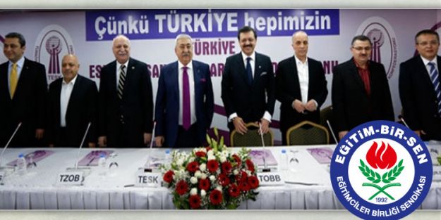 Toplumun farklı kesimlerini temsil eden Türkiye Odalar ve Borsalar Birliği (TOBB), Türkiye Ziraat Odaları Birliği (TZOB), Türkiye İşçi Sendikaları Konfederasyonu (Türk-İş), Türkiye İşveren Sendikaları Konfederasyonu (TİSK), Hak İşçi Sendikaları Konfederasyonu (Hak-İş), Memur Sendikaları Konfederasyonu (Memur-Sen) ve Türkiye Esnaf ve Sanatkarları Konfederasyonu (TESK) olarak buradayız.