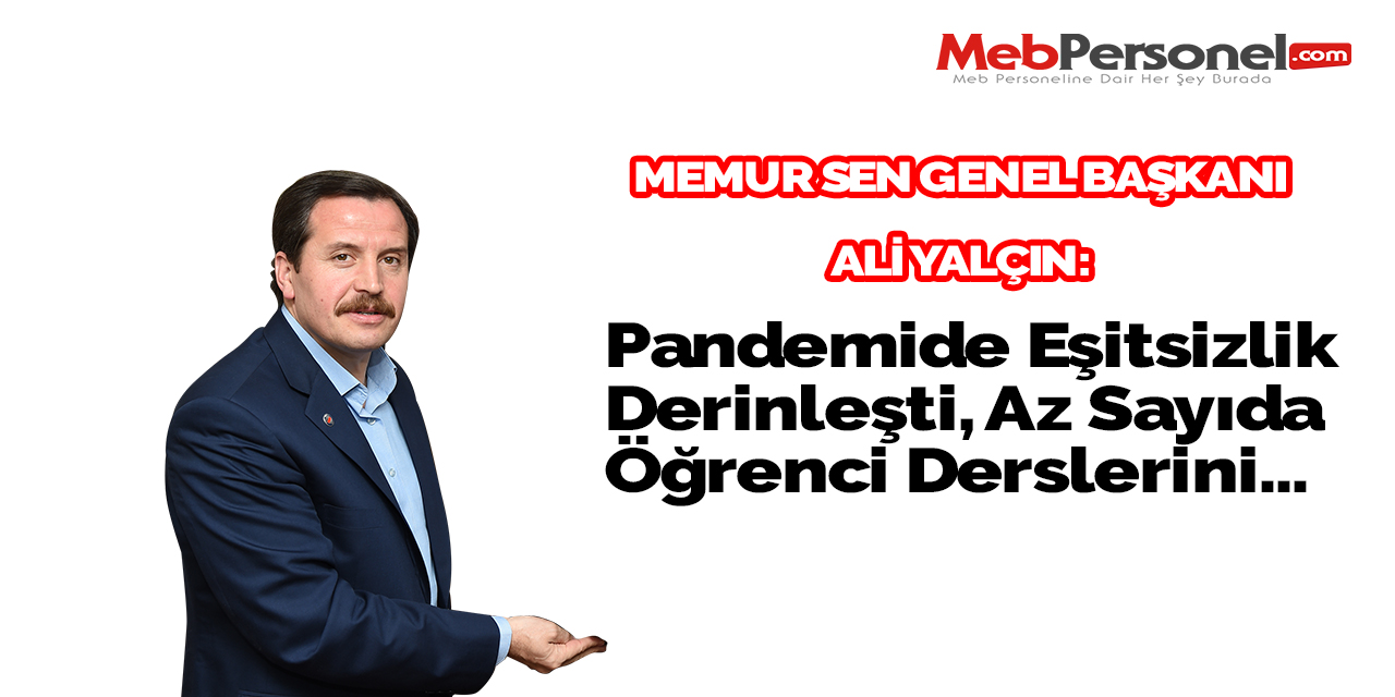 Eğitim Bir-Sen Başkanı Ali Yalçın, “Az sayıdaki öğrenci dersleri düzenli takip etme ve müfredatı öğrenme imkanına sahip iken, diğer taraftan oldukça büyük oranda öğrenci dersleri düzenli takip edemediğinden müfredatı öğrenme imkanından yoksun kalmıştır. Bu ise eğitimde eşitsizliklerin salgın sürecinde daha da derinleştiğini açık bir şekilde göz önüne sermektedir” dedi.