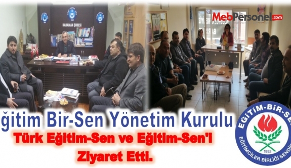 Eğitim Bir-Sen Karaman Şubesi İl Yönetim Kurulu; Karaman Türk Eğitim-Sen ve Karaman Eğitim-Sen İl Yönetim Kurullarını Sendika binalarında ziyaret etti.